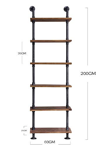 Diwhy 24”Width Industrial Pipe Shelves Rustic Modern Wood Ladder Bookcase with Metal Frame,Pipe Wall Shelf,Wood Storage,Home Decor,Display Shelving,Retro Floating Wood Shelving,6 Layer Bookshelf