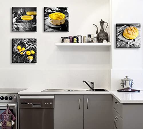 Kitchen Decor:kitchen wall decor,kitchen wall art,yellow kitchen decor,kitchen accessories,farmhouse wall art,the black and white yellow food picture very suitable for black, white, gray, yellow, blue, gold, brown, pink, light green wall decoration accessories.adds nice color to the room,makes your room look more beautiful and injects the soul of modern decoration.
