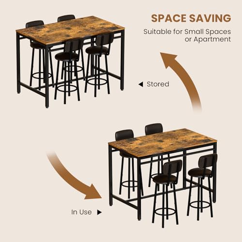 Compact and Space-Saving: Crafted for compact spaces, this dining set comfortably seats four, making it a really perfect choice for intimate dinners or gatherings. The chairs will also be neatly tucked under the table when now not in use, maximizing your space.