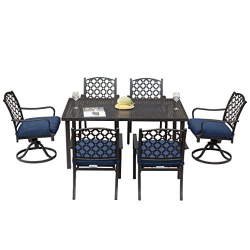 7 PCS SET: Our patio dining sets come with 2 swivel chairs, 4 dining chairs, 1 rectangle table and 6 cushions. Important tools and instruction are included for installation.