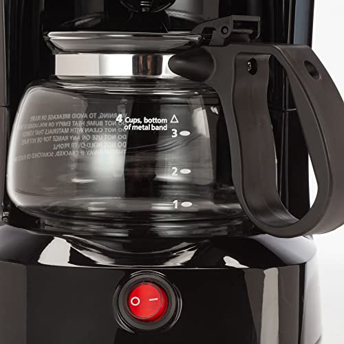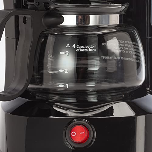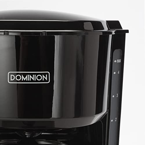 Dominion 4-Cup Coffeemaker Compact Coffee Pot Brewer Machine, Quiet Operation with On / Off LED Indicator Light, Convenient Cord Storage and Auto Pause Feature, Easy Anti-drip Coffeemaker with Coffee Pot and Removable Filter Basket for Office / Home, Black