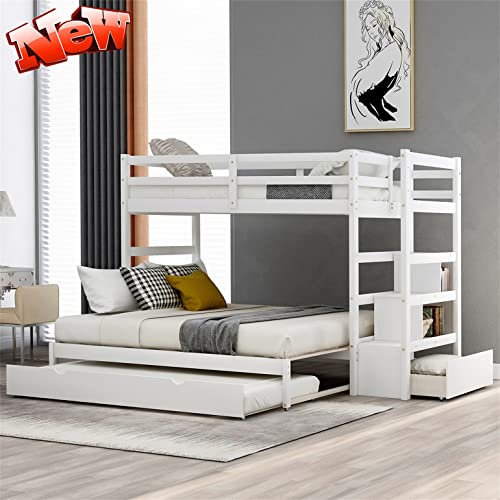 Space-Saving Bunk Bed: Multifunctional twin over twin bunk bed, Pull-out bunk bed frame Will also be extendable from twin size to king size, it is also with a trundle. There are two differences hidden under the stairs The large and small compartment storage shelf and drawer can store books, toys or other necessities of life.
