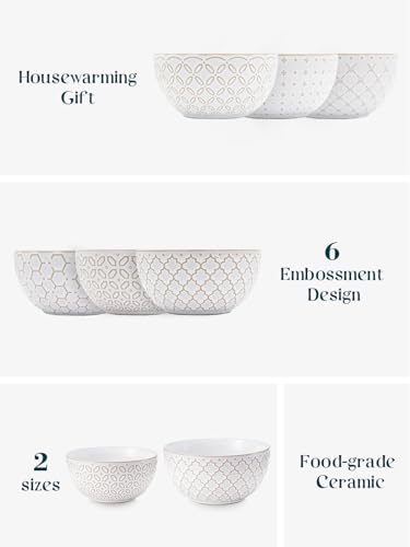 Farmhouse Style for Kitchen Decor: This 6-piece ice cream set features 6 different embossed patterns, making each piece unique. The exterior of the bowl is embossed and the interior glaze is a smooth ceramic surface. DOWAN embossed ice cream bowl set will reinforce your dining experience and add beauty to your home and kitchen.
