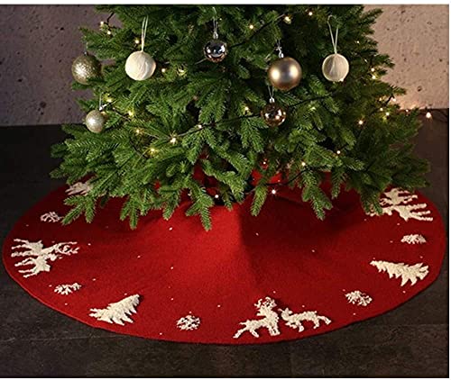 • Dremisland Christmas Tree Skirt Cable Knit Knitted Thick Rustic Tree Skirt for Xmas Holiday Decoration 3D Elk and Christmas Tree 36in Red