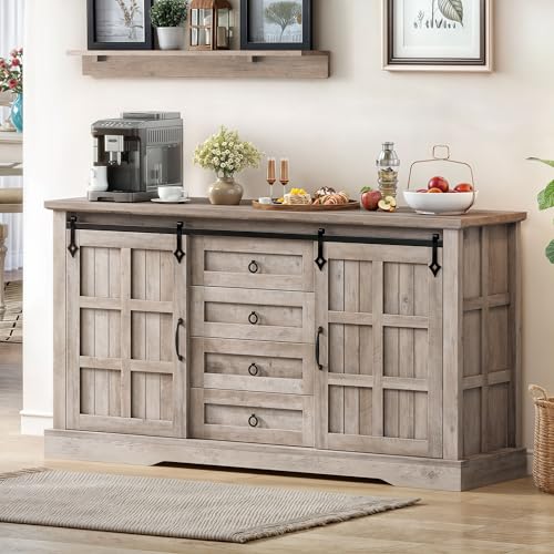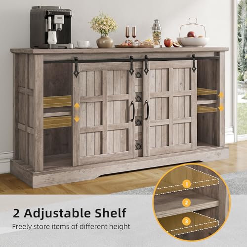 Rustic Elegance with Sliding Barn Doors: Revel in a blend of style and functionality with two charming yet smooth sliding barn doors, great for organizing your coffee essentials or displaying your favorite decor