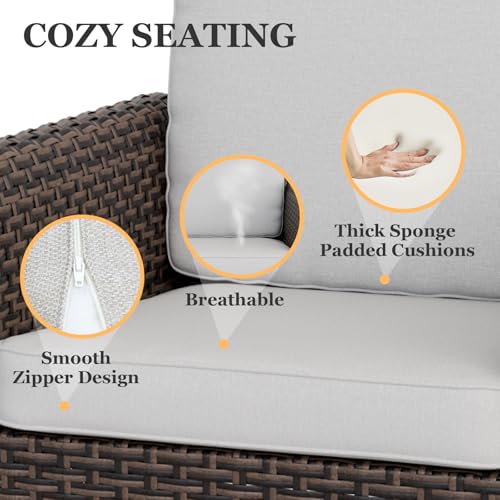 DURABLE: Crafted from premium PE rattan, this durable handwoven wicker furniture set is weather and fade resistant, ensuring lasting durability against warping or cracking. The sturdy powder-coated steel frame is supportive and rust proof.