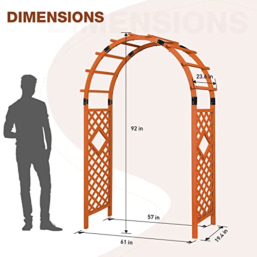 Arch Design: This wood arbor includes a classic arch design, which is best for hiking plants, flowers,string lights or balloons. It makes fora unique and charming entrance on your garden, patio, and backyard.