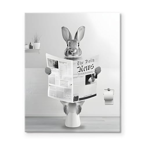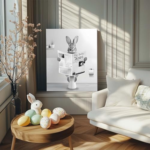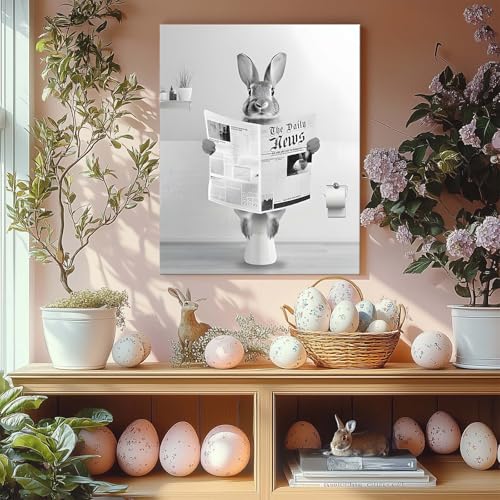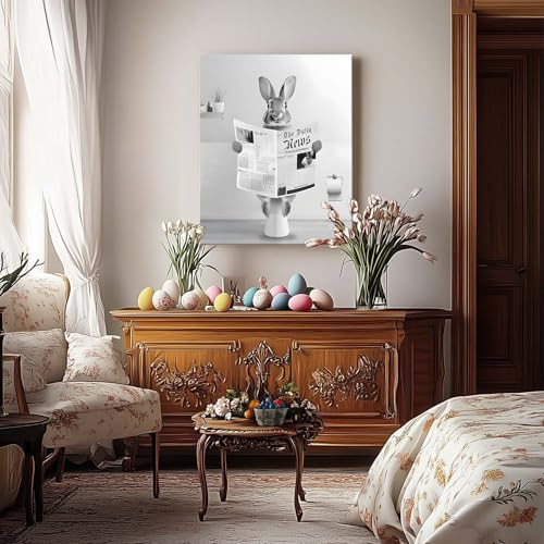 Whimsical Easter Bunny Artwork: This delightful Easter canvas showcases a vintage bunny reading the newspaper in toliet, capturing a playful and unique scene that adds character and charm to your springtime bathroom decor.