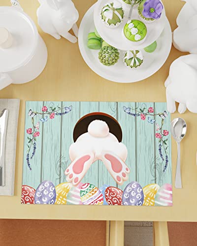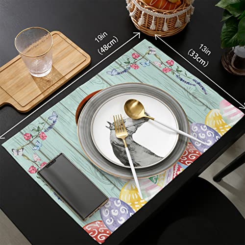 Table Placemat Material:placemats are made of polyester cotton line. waterproof and non-slip, durable mats are washable and you’ll be able to easily clean. It’s better to give protection to the table from scratches and sunshine,both aesthetics and durability.Easter pink bunny, country floral, retro plank.