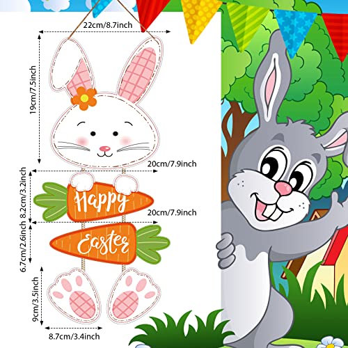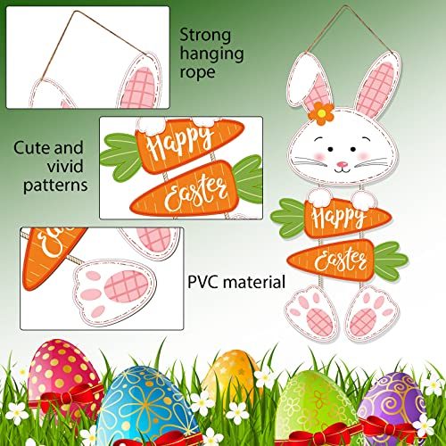 Happy Easter Hanging Sign: the Easter bunny head measures approx 8.7 x 7.5 inch, 2 Happy Easter carrots measure 7.9 x 3.2 inches and 7.9 x 2.6 inches, bunny paws are 3.5 x 3.4 inch, with a block design, lightweight and easy to store and hang, simply to hang them on doorway, window, wall and anyplace that you like indoor or out of doors, easily create a festive atmosphere of Easter in spring