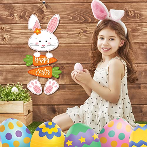 Easter Theme Design: Easter rabbit sign composed with cute bunny shape and Happy Easter carrot 4 parts in total, spliced with rope together, classic Easter elements and lovely design make this bunny hanging sign easily bring you a good mood, and make a good addition to your Easter party, spring party, bunny theme birthday party and school classroom activities