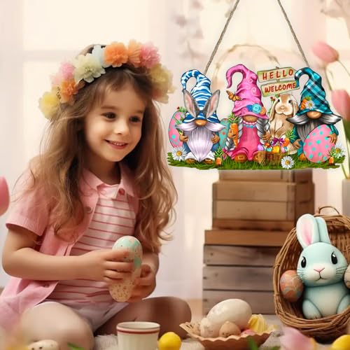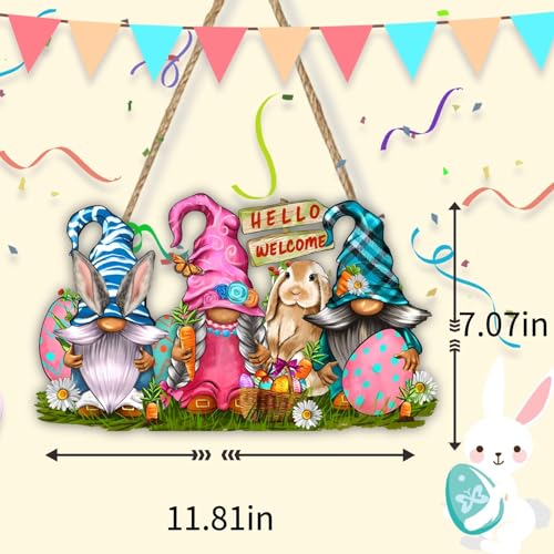 🐰〖Easter Themed Decorations〗Elevate your Easter and Spring decor with this charming Welcome Door Sign featuring Easter Bunny Gnomes and a cheerful ‘Hello Welcome’ greeting. The cute Gnomes rabbits and colored eggs render a happy and warm atmosphere.