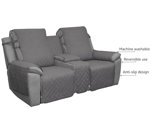 • Easy Going Loveseat Recliner Cover with Console Reversible Couch Cover for Living Room Split Sofa Cover for Each Seat with Elastic Straps for Kids Dogs Pets2 Seater GrayLight Gray