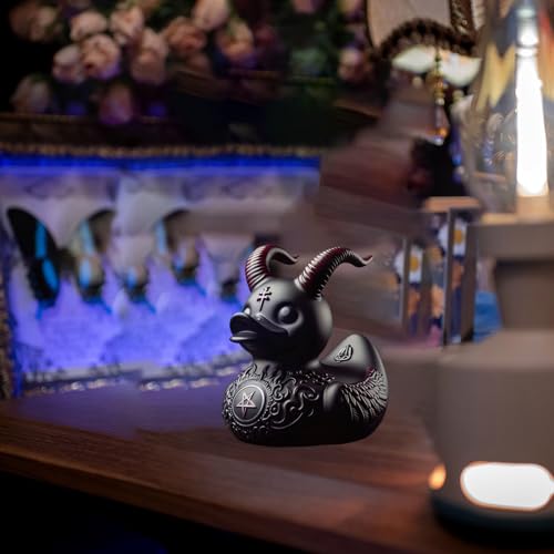 • edenfuax Punk Duck Goth Resin Duck Garage KitsUnique Gothic Gifts CollectiblesVinyl Rubber Novelty Ornament Dark Satanic Duck Figurine for Desktop Home Halloween Decor Satan Duck