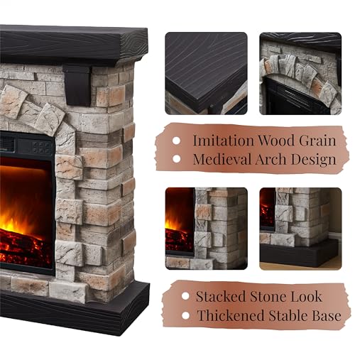 【Realistic Faux Stone Fireplace Frame】This fireplace frame features an elegant stone veneer and desirable wooden accents, providing both a tactile and visual experience akin to a genuine stone.