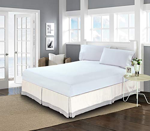Elegant Comfort ™ Silky-Soft Luxury Lace Fringe Dust Ruffle/Bed Skirt Microfiber Platform Wrinkle and Fade Resistant with 15inch Drop