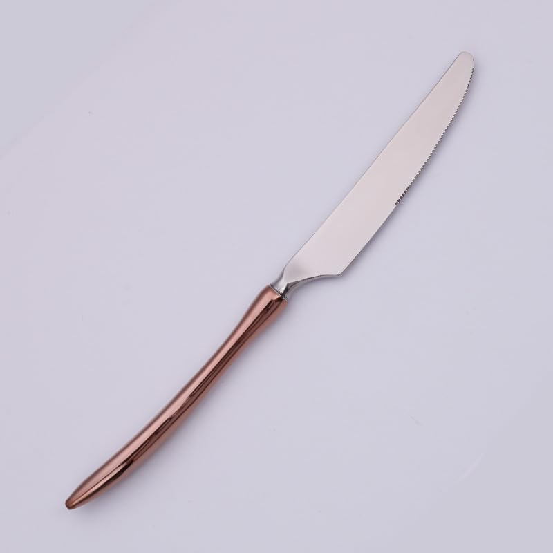 PERFECT DESIGN: Our cutlery set is multicolor shining, elegant enough to match our high-taste tableware, and the silverware set would be a great addition to our dining table setting. The stem is finished with rose gold, gold, silver, or black heavy-duty, style, and longevity. The knifee is hand-crafted and designed to be super sharp.