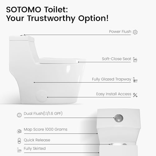 Up to date Toilets for Bathrooms: The SOTOMO elongated one-piece toilet ensures user comfort and Up to date simplicity, adding elegance to your house living. It’s suitable for quite a lot of bathroom styles