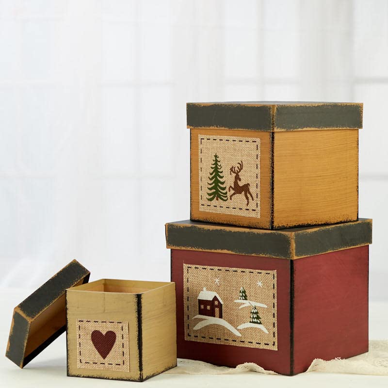 Rustic Charm: This set includes three nested paper mache boxes, every pre-decorated with a primitive wintry Christmas theme, absolute best for adding a touch of rustic charm on your holiday decor. Designed to seem old and aged, these boxes bring a nostalgic, vintage feel on your festive decorations, making them ideal for creating a cozy, Christmas farmhouse-style