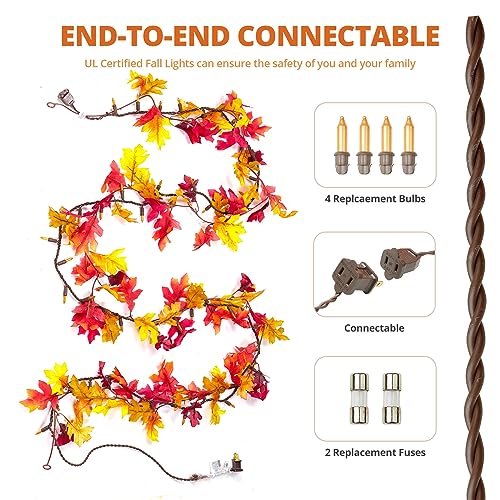 UL-Listed Fall Garland Lights: The whole maple leaves garland lights, including string wire, incandescent bulbs and plug have been certified by UL. Which means that safer and more durable. Perfect to decorate your table, fireplace, windows, stairs, yard, balcony, garden throughout Harvest, Thanksgiving, Halloween and Christmas.