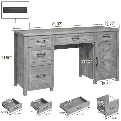 【Ample Storage Space】Measuring 61 inches wide and 31 inches tall, this executive desk provides a lot of storage for your whole office essentials. It features five drawers, including dedicated file drawers that accommodate both letter and A4-sized documents, in addition to spacious storage cabinets, offering an organized solution for files, books, and other necessities.