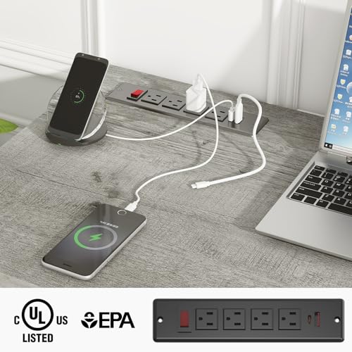 【Built-in Charging Station】Equipped with four power outlets and two USB ports, the built-in charging station means that you can charge up to six devices at once. A convenient on-off switch ensures protected energy management, making it easy to power your phones, tablets, laptops, and other electronics safely and conveniently in your workspace.