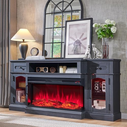 【Protected and Durable Crafted from MDF】It boasts double top panels and a 4” thickened base for long-term sturdiness, Holds up to 300 lbs with ease. High-Quality mute slide rail and hinges offer a cushioned anti-pinch function. Rest easy with our Fireplace Safety Guarantee, featuring overheat protection and ETL/FCC certifications. The entire glass in this cabinet is high-strength tempered, which can provide higher strength and minimize damage. Elevate your home with this reliable and chic addition!