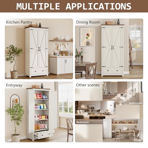 Farmhouse-Inspired Storage Solution: This LUXOAK kitchen pantry cabinet exudes rustic charm with its two large barn doors and folded edge design, blending seamlessly with traditional or up to date farmhouse decor.