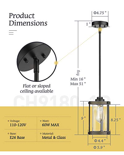 Farmhouse pendant light fixture: With an industrial style cage, this pendant lighting fixtures kitchen island with clear glass shade in black and wood finish, which is perfect for latest and transitional spaces.