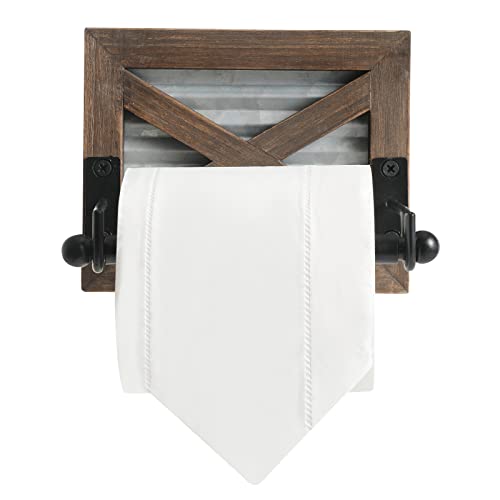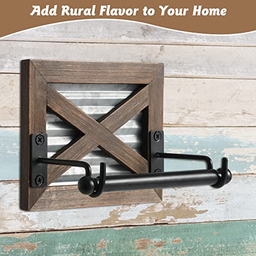 ✨RUSTIC STYLE: This farmhouse toilet paper holder has a rustic farmhouse style design with a distressed barn door pattern and corrugated metal for a rustic farmhouse vibe. The rustic toilet paper holder is suitable for occasions such as theme hotels, farmhouse style decoration, and the like.