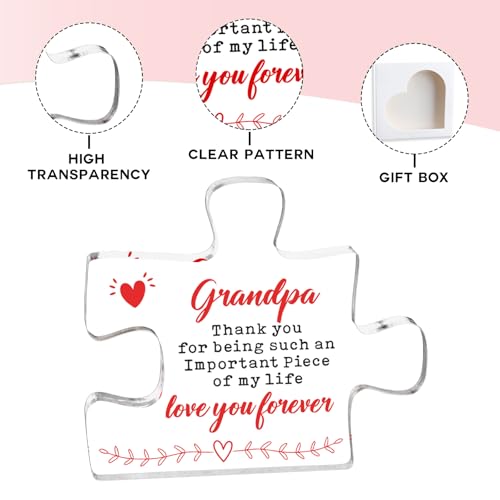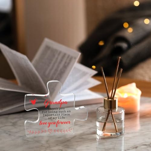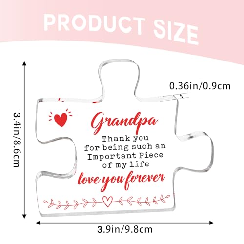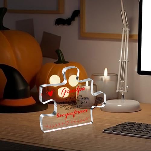 【Grandpa Gifts – Cute Engraved Acrylic Block Puzzle Piece】: This funny engraved acrylic puzzle decorative plaque is the perfect gift for grandpa. Designed in puzzle style, printed with warm words and beautiful elements – Grandpa Thank you for being such an important piece of my life love you ceaselessly. Surprise your grandpa with this unique gift and tell him sincerely that you are going to at all times love him