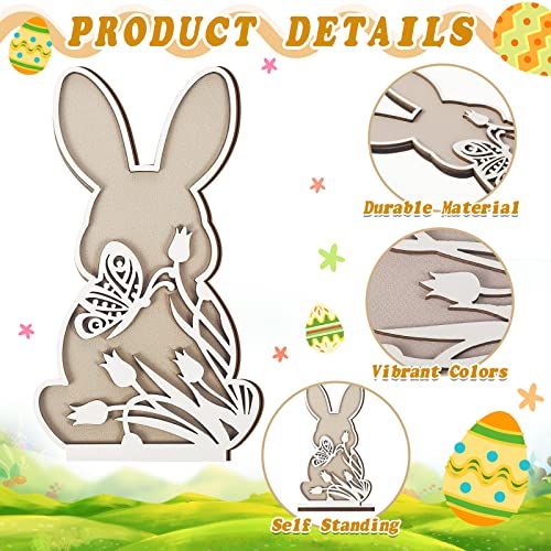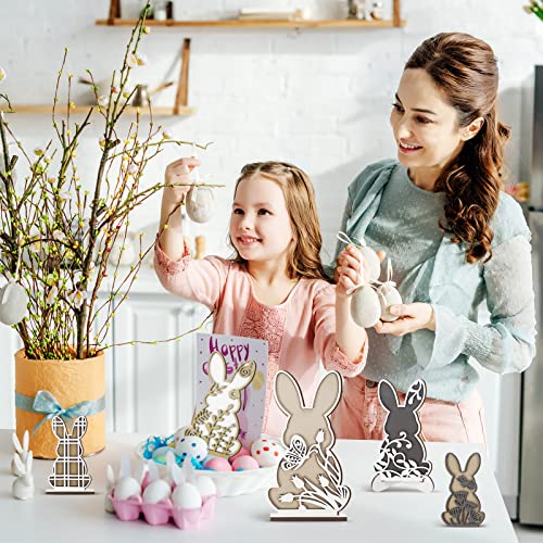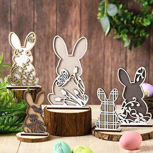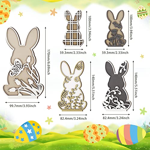 Ferraycle 5 Pieces Bunny Table Decorations Wooden Bunny Signs for Home Wood Rabbit Tiered Tray Easter Decorations for Farmhouse Party Supplies