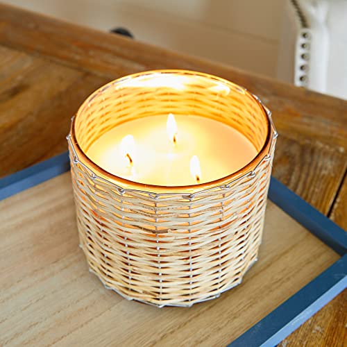 BWGL3 Seaside Wooden 3 Wick Handwoven Candle, 21oz