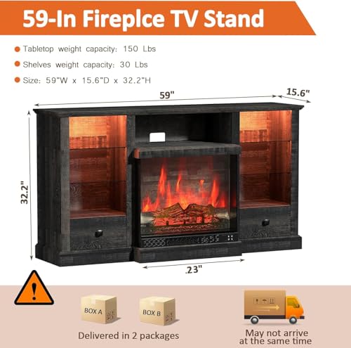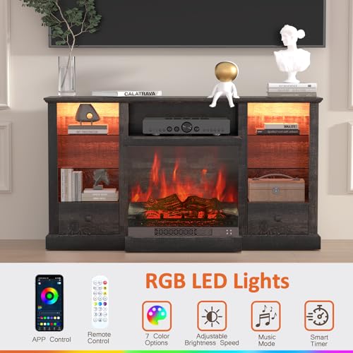 Ample Storage Solutions: Equipped with 2 spacious storage compartments on either side of the fireplace, every featuring a convenient drawer and open shelving above. This design means that you can neatly store books, electronics, and decor items even as keeping them easily accessible.