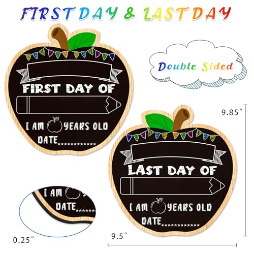 Double-Sided for Year-Round Use: First & Last Day of School Chalkboard is an ideal photo prop for the first day and last day of school. It creates a cherished memory for your child’s growth and milestones such as in pre-k, preschool, kindergarten, and 1st-12th Grades.