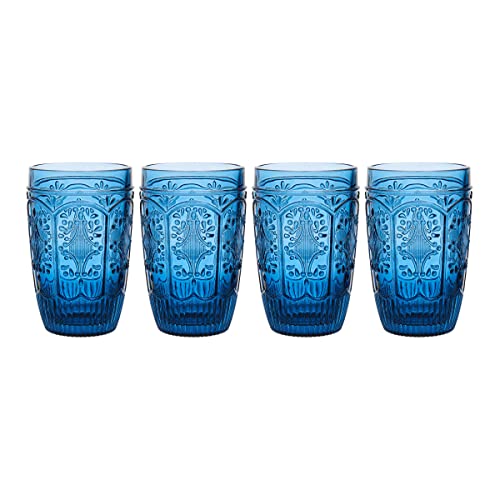 Beautifully designed with vintage style that transitions easily from classic to up to date table settings, this Fitz and Floyd Set of 4 Trestle Highball Indigo Glasses is pressed and molded for crisp, distinct detail. The pattern echoes the original, open framework of classic bridge architecture, combining artistic lines and intricate details to create a stunning visual, and the coloured glass adds a touch of up to date allure. These versatile glasses are perfect for all form of beverages, including juice, soda, iced tea, water, and wine. Set of 4. Each and every 12-fluid ounce glass measures 5 inches tall and 3 inches in diameter. Dishwasher protected.