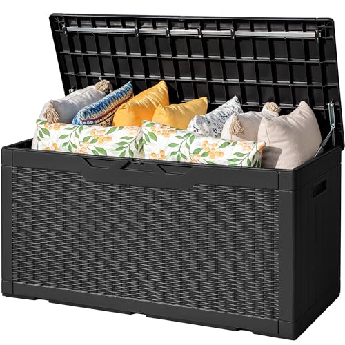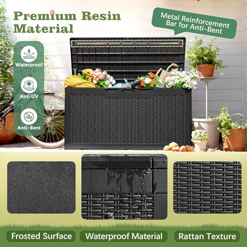 All-Weather Material: Deck box is made of premium Resin, featured with waterproof and UV resistant which protects its exterior from fading and keeps its interior dry. Suitable for long time outdoor the usage of.