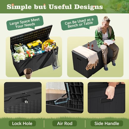 Wide Applications: Simple appearance with multi-purpose design, this storage box can easily integrate into your more than a few indoor and outdoor scenarios like living room, balcony, porch, patio, deck or poolside. Store your tools or cushions.