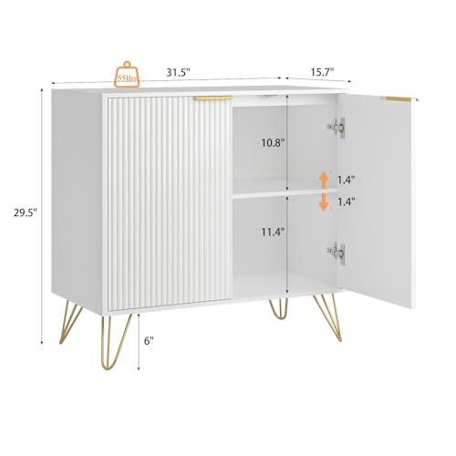 Crafted to Last: This fluted cabinet is made of thickened engineered wood for high load-bearing capacity (main frame: 12mm, door: 15mm), ensuring that your buffet storage cabinet withstands the test of time whilst maintaining elegant appearance. Maximum weight capacity: 55 lbs.