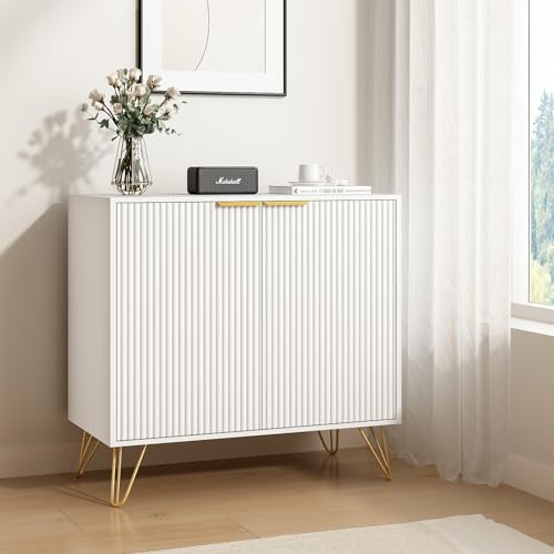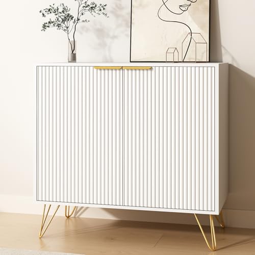 Artistic Fluted Design: This storage cabinet features a unique waveform fluted paneland gold metal handles, this accent cabinet combines two contrasting styles, adding a up to date artistic touch to your home that complements more than a few decor styles.