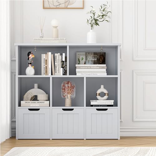 【Versatility Cabinet】Featuring ample display space and a considerable amount of storage, this 2-in-1 cabinet not only works well as a bookshelf to serve leisure reading time, but also serves perfectly as a toy storage organizer to accompany play time, or a storage cabinet to stash away your items in the living room as well as the entryway.