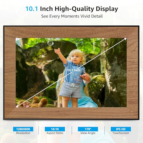 【HIGH-QUALITY DISPLAY & CUSTOM SETTINGS】The 1280*800 HD touch screen offers stunning photo details from more than a few angles, ensuring an exceptional visual experience. The electric picture frames feature a user-friendly touch screen for simple customization of functions like play order, slideshow mode, photo interval, image hiding/publishing, caption display, sleep mode, and more, catering to your diverse picture playback needs