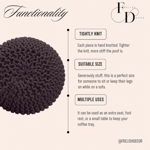 • FRELISH DECOR Round Pouf Ottoman Hand Knitted 100 Cotton Pouf Foot Stool Knitted Bean Bag Floor Chair for Living Room Bedroom Foot Rest for Couch 20 Diameter x 14 Height Brown