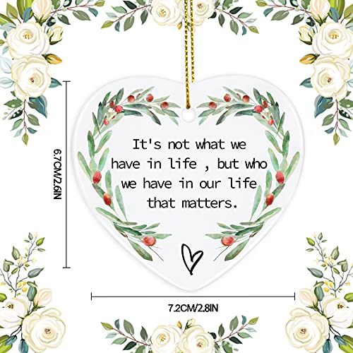 Express your gratitude and appreciation for that special friend with this heart-shaped ceramic ornament from Jocidea. A thoughtful gift for any occasion, this ornament is perfect for birthdays, anniversaries, weddings, Thanksgiving, or Christmas. The ornament is made of high-quality ceramics, ensuring a good gloss and texture, and is unscented. It features a gold ribbon loop for easy hanging and may also be displayed on your Christmas tree, table center, window, or shelf. The ornament is personalized with warm words that make it an unforgettable gift for your friend, and it is sure to stand out as a unique and heartwarming gift for your best friend. The ornament measures 3.94 x 3.94 x 0.98 inches and is rustic in style. It isn’t customizable and does not require batteries. The ornament is a part of Jocidea’s ‘Who We Have in Our Life That Matters’ collection and is a superb way to commemorate the feelings between you and your friend.