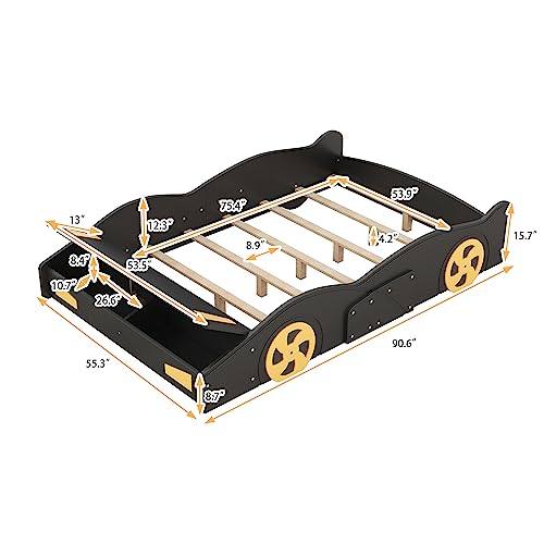 [Race Car Inspired] With its captivating race car design and vibrant yellow wheel decorations, this bed is sure to grasp attention and transform a point of interest in your bedroom.