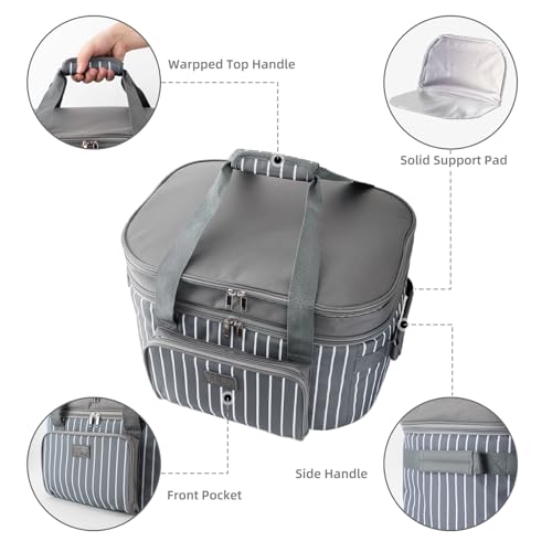 Fun Elements Double Layer Slow Cooker Carrier Bag for 6-8 Quart Oval CrockPot, Insulated Crock Pot Travel Bag with Support Pad and Adjustable Straps, Top Zip Compartment and Front Pocket for Utensils