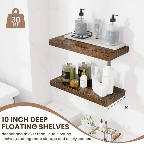 STYLISH & PRACTICAL: These 10-inch deep floating shelves offer a simple rustic charm and are made from permium engineered wood. With their smooth, natural finish, they add warmth and personality to any room, fitting seamlessly into both modern and classic interiors