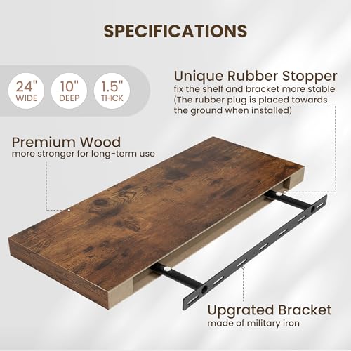 VERSATILE WALL SHELVES: This 24 inches floating shelf is a versatile solution for any room in your house. Whether used in the living room, bedroom, office, or kitchen, it may be styled to suit more than a few purposes, from displaying art to organizing everyday items. Perfect for enhancing any decor
