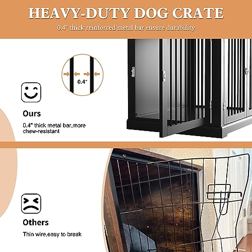 【Sturdy and Chew-Resistant Design】Our dog crates features 10 mm diameter metal pipes that effectively prevent chewing, ensuring durability and avoiding deformation. The heavy-duty construction combines high-quality MDF and metal, providing your pet with a long lasting, stable, and protected resting place. Please note that the wooden parts of the dog crate furniture don’t seem to be chew-resistant
