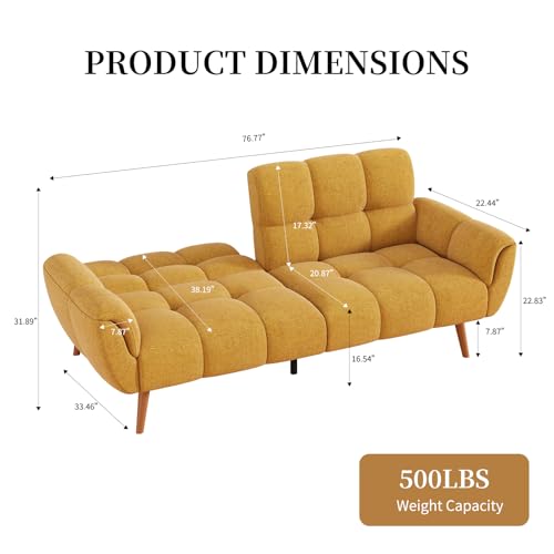 Sturdy & Durable – Built with a durable frame and solid picket legs, our futon couch is designed for longevity. Measuring 33.46″ D x 76.77″ W x 31.89″ H, it supports as much as 500 lbs.